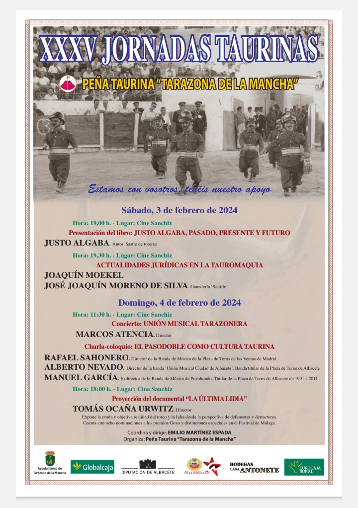 Y, así como buena escuela de información y enseñanza, la “Peña Taurina TARAZONA DE LA MANCHA” presenta sus XXXIV JORNADAS TAURINAS.